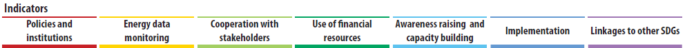 In this online tool, seven indicators and eight sub-indicators are considered, which, in a qualitative manner, cover important areas of the local context in a jurisdiction in relation to SDG7 Localisation, such as: policy and institutional environment, capacity, stakeholder engagement, data collection, financial resources, implementation efforts and linkages to other SDGs. These qualitative indicators are used in the cities’ self-assessment of their capacity and availability of policies, actions and resources for supporting SDG7 localisation. It is important to note that these indicators are not for measurement of the level of cities’ achievement of the quantitative targets under the global SDG7.